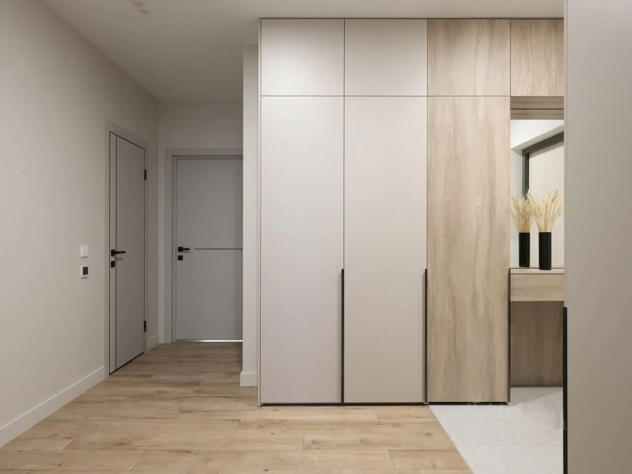 Всё согласовано между собой — нет риска, что шкаф не впишется в нишу или розетка окажется за диваном.
