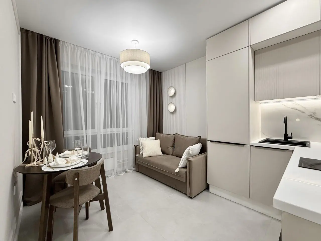 Нужно было срочно переехать в квартиру с ремонтом от застройщика. На подбор мебели времени не было. Дизайнер Наталья оперативно предложила 2 варианта на выбор. Работа до финального утверждения и начала закупок заняла 2 недели.